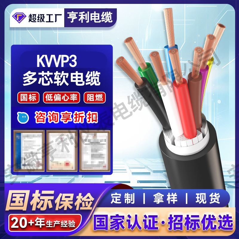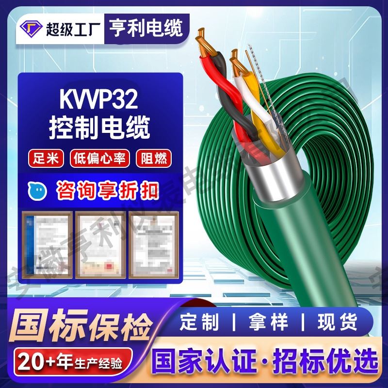 控制电缆适用于工矿企业供交流额定电压450/750伏以下控制、保护线路等场合使用的绝缘,护套控制电缆。控制电缆的使用特性:额定电压:U0/U为450/750V。导体线芯长期工作温度为70℃、95℃两种,电缆敷设温度不低于0℃。电缆的推荐允许弯曲半径如下:无铠装电缆,应不低于电缆外径的6倍;铠装或铜带屏蔽电缆,应不低于电缆外径的12倍;屏蔽软电缆,不低于电缆外径的6倍。控制电缆泛指设备仪表供电/信号控制代表型号:KVV/KYJV/还有其它仪表线等等控制电缆产品说明执行标准:GB/T9330-2008。阻燃电缆还应符合IEC337-8标准的技术条件。型号产品名称电压V芯数截面mm2主要适用范围KVV阻铜芯聚氯乙烯绝缘聚氯乙烯护套kvv电缆450/7504-370.75-10敷矿用控制电缆矿用控制电缆设在室内,电缆沟、管道等固定场合KVV22铜芯聚氯乙烯绝缘聚氯乙烯护套钢带铠装kvv22电缆450/7504-370.75-10敷设在室内,电缆沟、管道直埋等能承受较大机械外力的固定场合KVVP阻燃铜芯聚氯乙烯绝缘聚氯乙烯护套kvvp电缆450/7504-370.75-10敷设在室内,电缆沟、管道等要求屏蔽的固定场合KVVR铜芯聚氯乙烯绝缘聚氯乙烯护套控制软电缆450/7504-370.75-10敷设在室内,有移动要求的场合KVVRP铜芯聚氯乙烯绝缘聚氯乙烯护套编织屏蔽控制软电缆450/7504-370.75-10敷设在室内,有移动屏蔽要求的场合ZRKVV阻燃铜芯聚氯乙烯绝缘聚氯乙烯护套zrkvv电缆450/7504-370.75-10敷设在室内,电缆沟、管道等要求阻燃的固定场合ZRKVV22铜芯聚氯乙烯绝缘聚氯乙烯护套编织钢带铠装zrkvv22电缆450/7504-370.75-10敷设在室内,电缆沟、管道直埋等能承受较大机械外力有阻燃要求的固定场合ZRKVVP铜芯聚氯乙烯绝缘聚氯乙烯护套编织屏蔽zrkvvp电缆450/7504-370.75-10敷设在室内,电缆沟、管道等要求屏蔽、阻燃的固定场合ZRKVVR铜芯聚氯乙烯绝缘聚氯乙烯护套编织zrkvvr电缆450/7504-370.75-10敷设在室内,有移动和阻燃要求的场合ZRKVVRP铜芯聚氯乙烯绝缘聚氯乙烯护套编织屏蔽zrkvvrp电缆450/7504-370.75-10敷设在室内,有移动屏蔽和阻燃要求的场合耐高温控制电缆(KFF电缆)适用于交流额定电压300/500及以下,高温环境中的信号检测。尤其适用于消防与保安系统保护回路的控制及动力的传输线。使用特性:工作温度:长期使用200℃ 短期使用1000℃ 90分钟